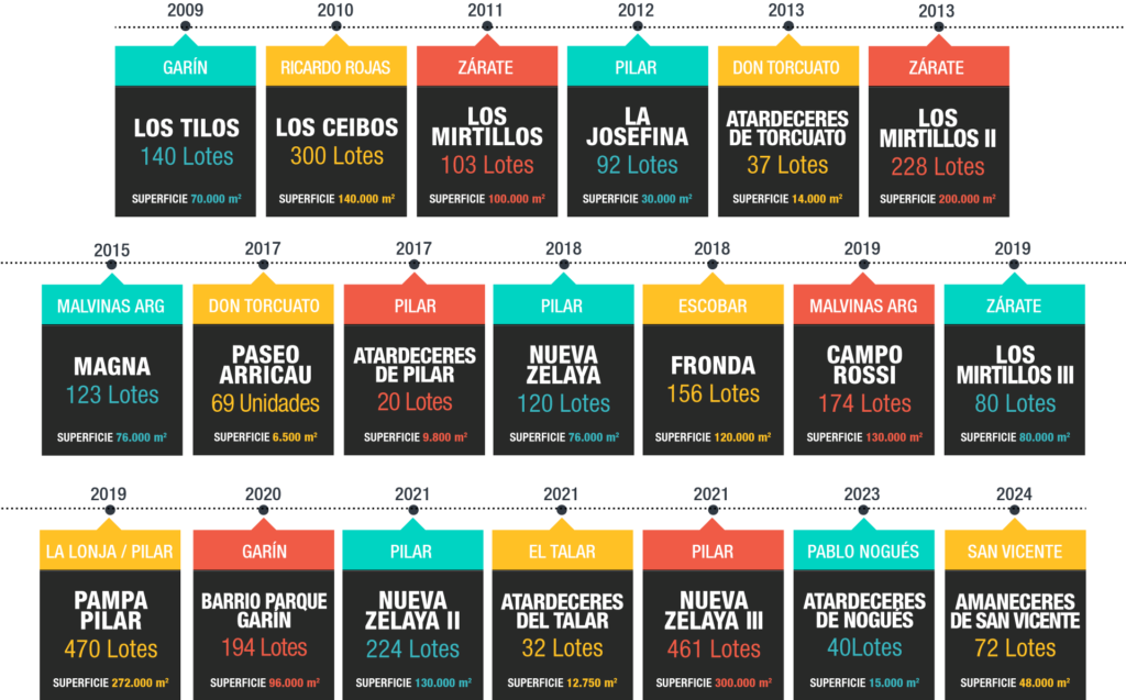 En esta web podrá encontrar nuestros barrios con lotes disponibles y debajo podrá conocer los barrios con lotes 100% vendidos, donde cientos de familias disfrutan de una vida confortable en su terreno propio.